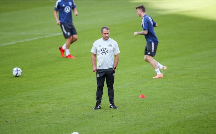 Bundestrainer Hansi Flick musste in der letzten Übungseinheit auf Robin Gosens verzichten, der wegen seiner Kapselverletzung gegen Armenien nicht einsatzfähig ist. Im Gegenteil zu Havertz war der Linksverteidiger von Atalanta Bergamo beim Foto-Termin für das Gruppenbild vor dem Trainingsstart in der Stuttgarter Arena dabei.