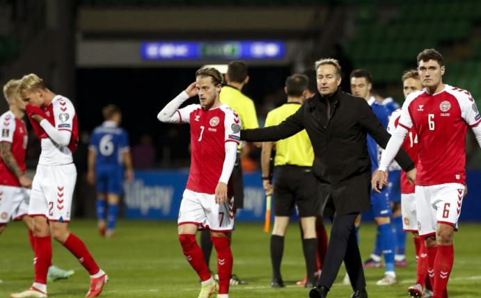 Die Teilnahme an den Play-offs hat die Mannschaft des früheren Mainzer Bundesligatrainers Kasper Hjulmand bereits sicher. Schottland (3:2 gegen Israel) liegt drei Spieltage vor Schluss sieben Punkte zurück, die Israelis elf. Das punktgleiche Österreich hielt durch ein 2:0 (1:0) auf den Färöern den Anschluss.